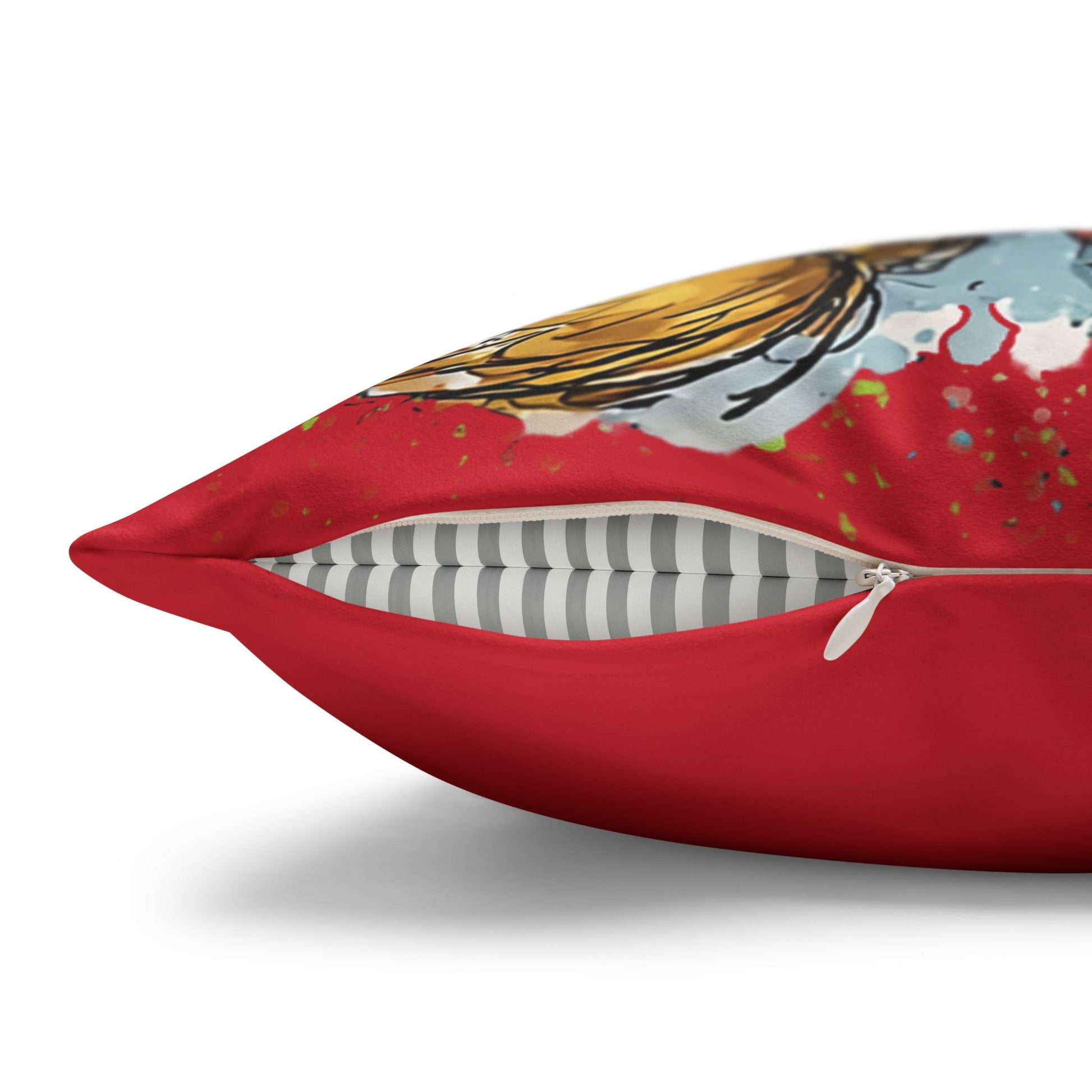 A soft faux-suede pillowcase that brings playful holiday warmth to any room. The double-sided print shows a whimsical trio set against a deep red, snow-speckled background. The fabric feels velvety to the touch while holding up to everyday use. A concealed beige zipper keeps the look seamless, and the cover is pre-constructed for easy styling. Use an insert slightly larger than the cover to achieve a plush, full appearance on couches, beds, or cozy reading nooks during the holiday season. PILLOW INSERT NOT INCLUDED.