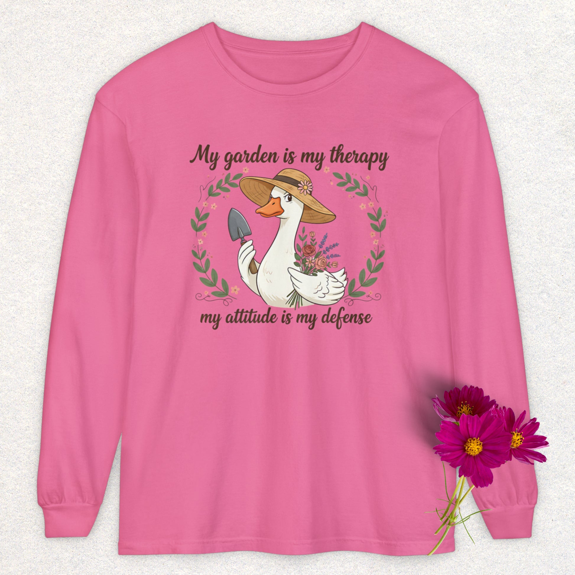 Embrace the calming vibes of nature with our Unisex Garment-Dyed Long Sleeve T-Shirt. Designed for those who find peace in gardening, this shirt features a charming illustration that resonates with plant lovers and garden enthusiasts alike. Its soft fabric and relaxed fit make it an ideal choice for cozy days spent tending to your outdoor sanctuary or enjoying a sunny afternoon in the park.