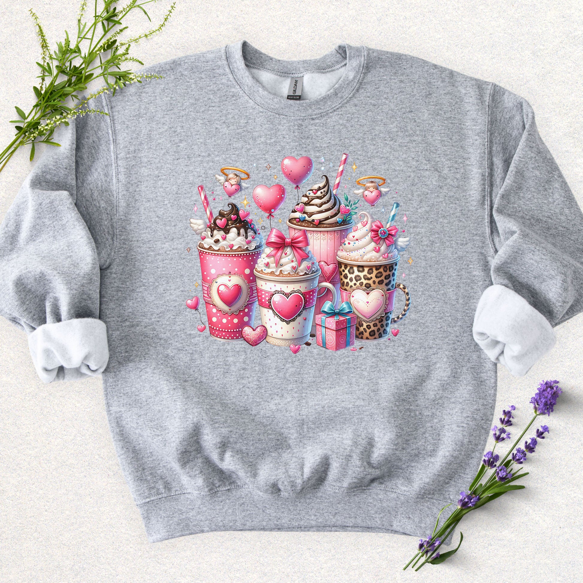 This cozy unisex heavy blend crewneck sweatshirt is your go-to for warmth and style during those chilly days. Its fun and colorful design, featuring delightful treats and charming hearts, brings a playful yet cozy vibe to your wardrobe, making it perfect for a casual outing or a cozy night in. Ideal for trendsetters who love to showcase their quirky side, this sweatshirt is suitable for all ages and great for anyone who enjoys comfort with a touch of creativity. Celebrate holidays like Valentine's Day, or simply bring joy to your everyday style with this cheerful garment.